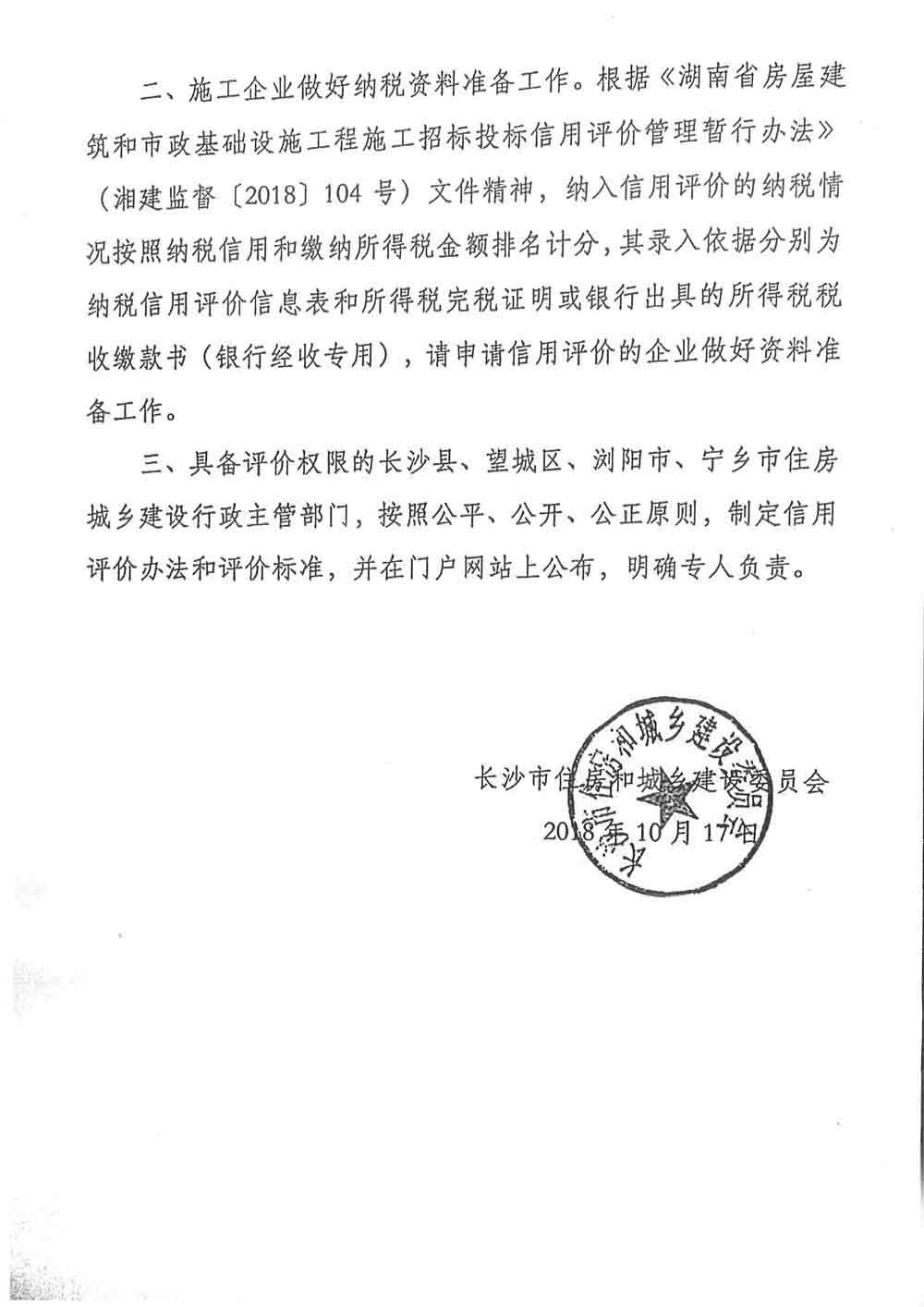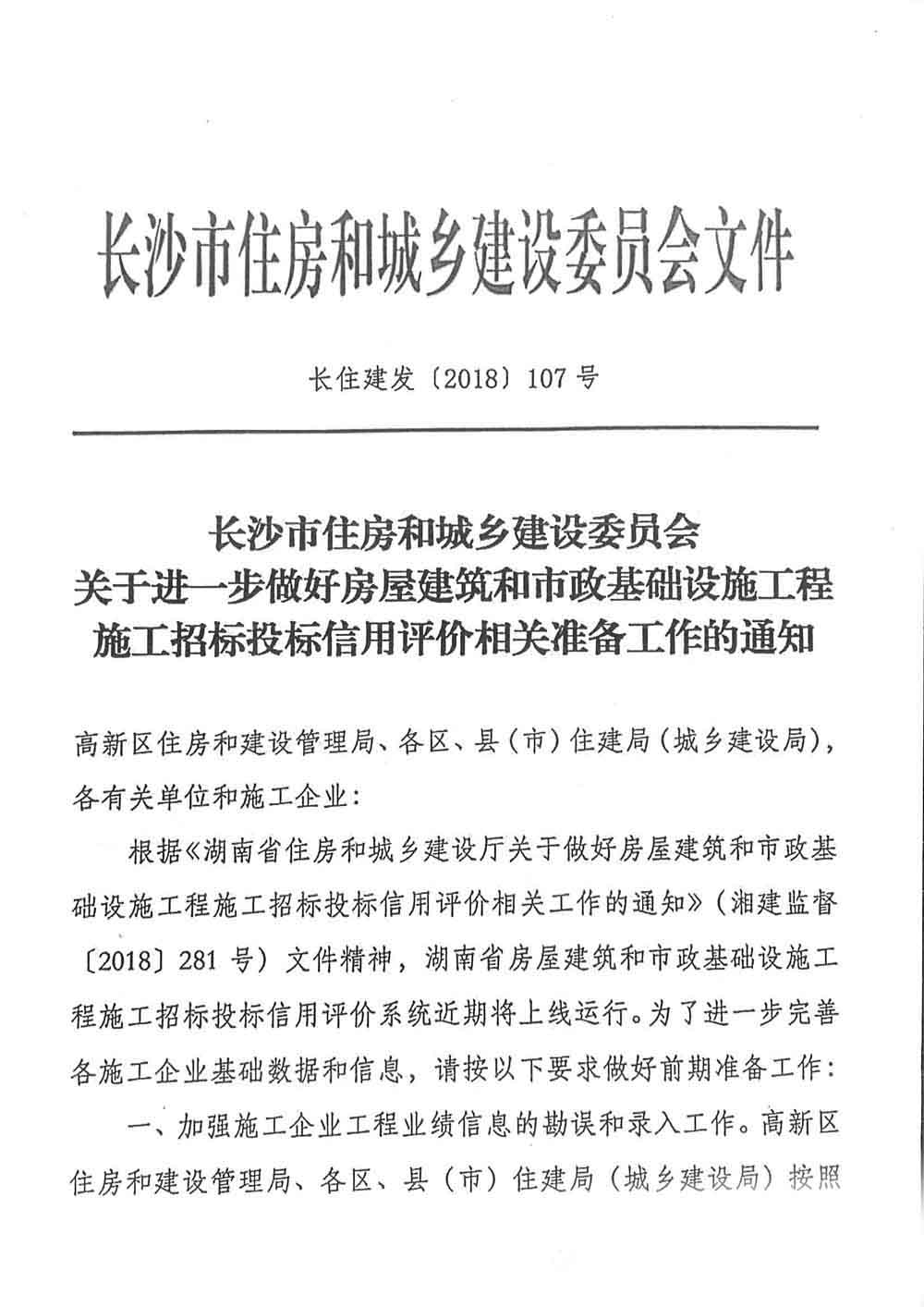 關于進一步做好房屋建筑和市政基礎設施工程施工招投標信用評價相關準備工作的通知(長住建發(2018)107號)