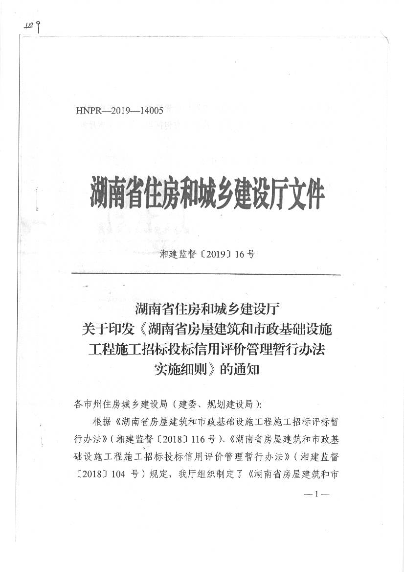 湖南省房屋建筑和市政基礎(chǔ)設(shè)施工程施工招投標(biāo)投標(biāo)信用評(píng)價(jià)管理暫行辦法實(shí)施細(xì)則