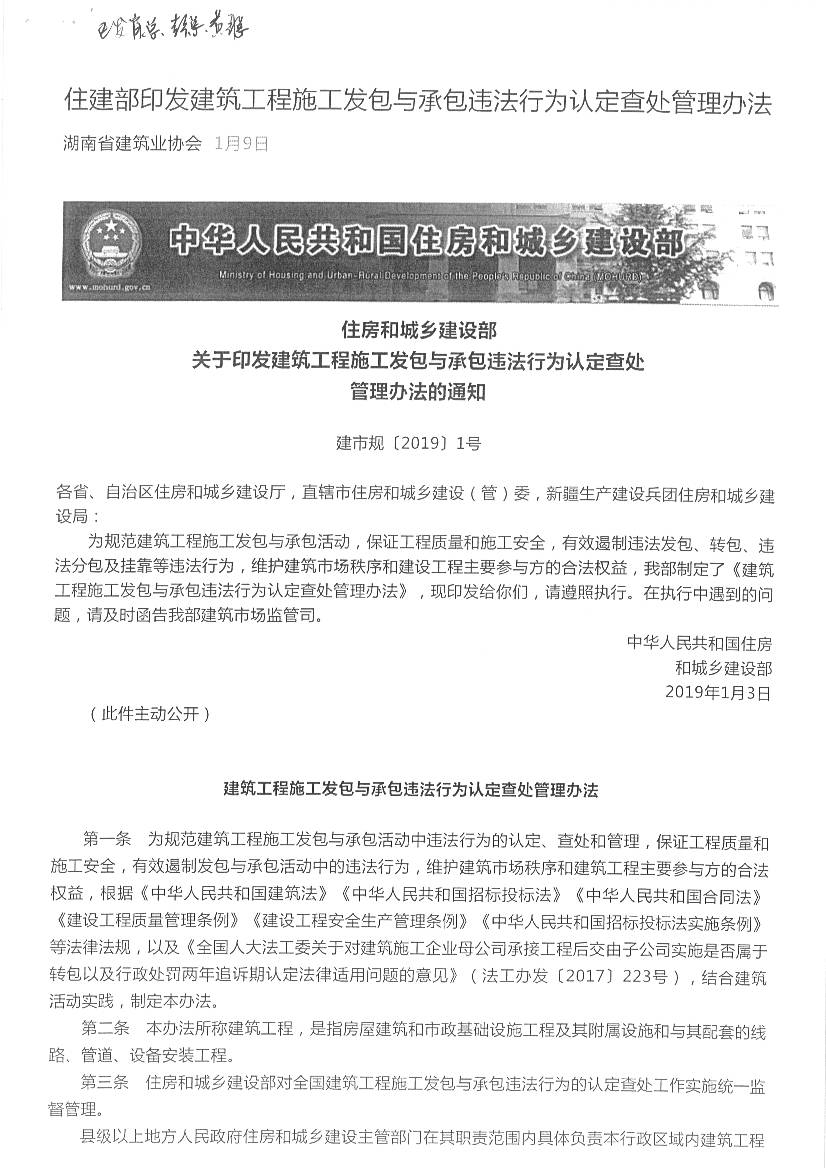 建筑工程施工發包與承包違法行為認定查處管理辦法